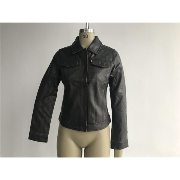 Button Through Ladies PVC Jacket , Pleather Dark Brown Jacket LEDO1739 Images |