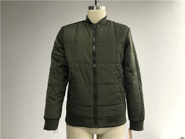 Menswear plastic zip through FATIGUE quilted polyester padded baseball bomber puffer jacket with rib detail TW76554